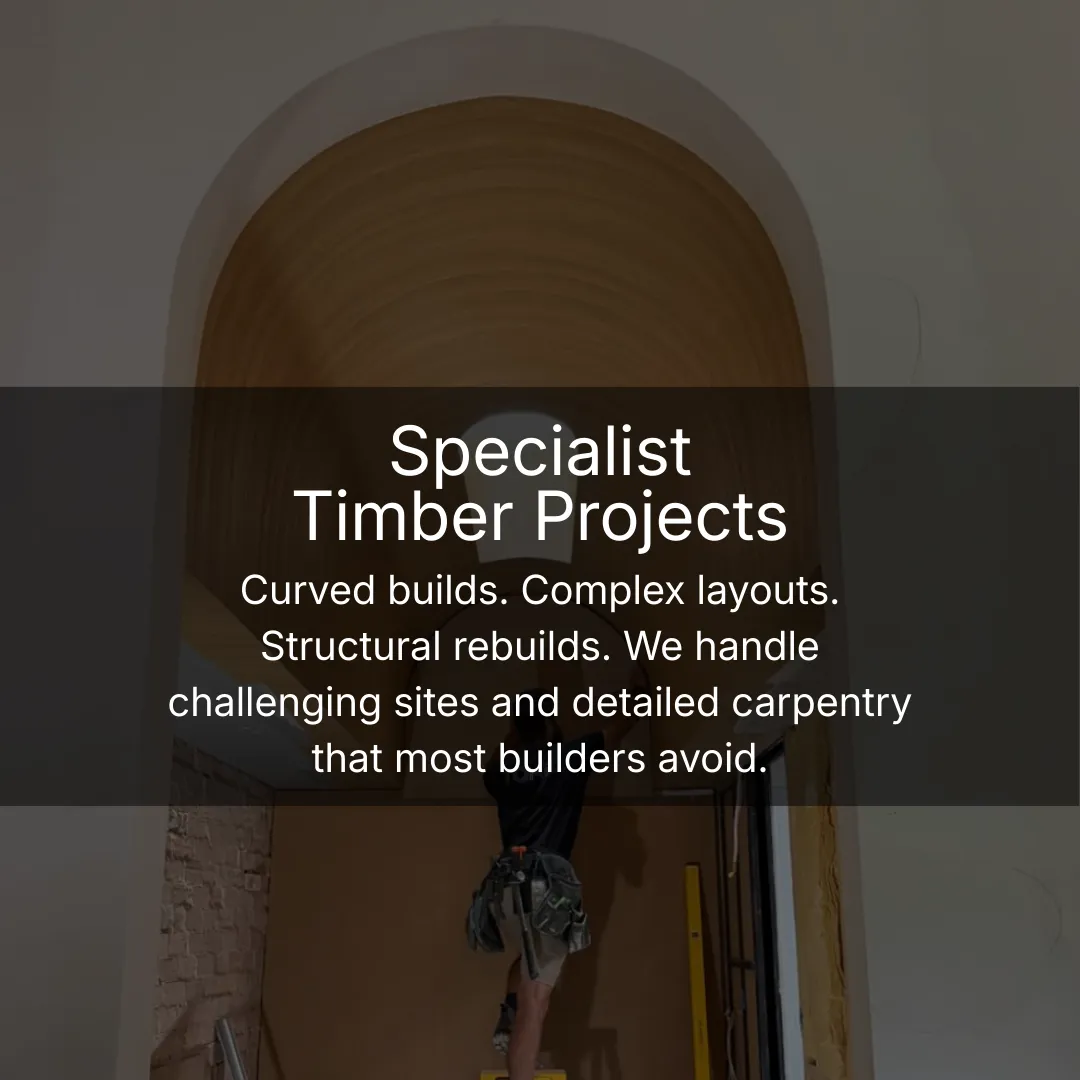 We handle challenging sites and detailed carpentry that most builders avoid.