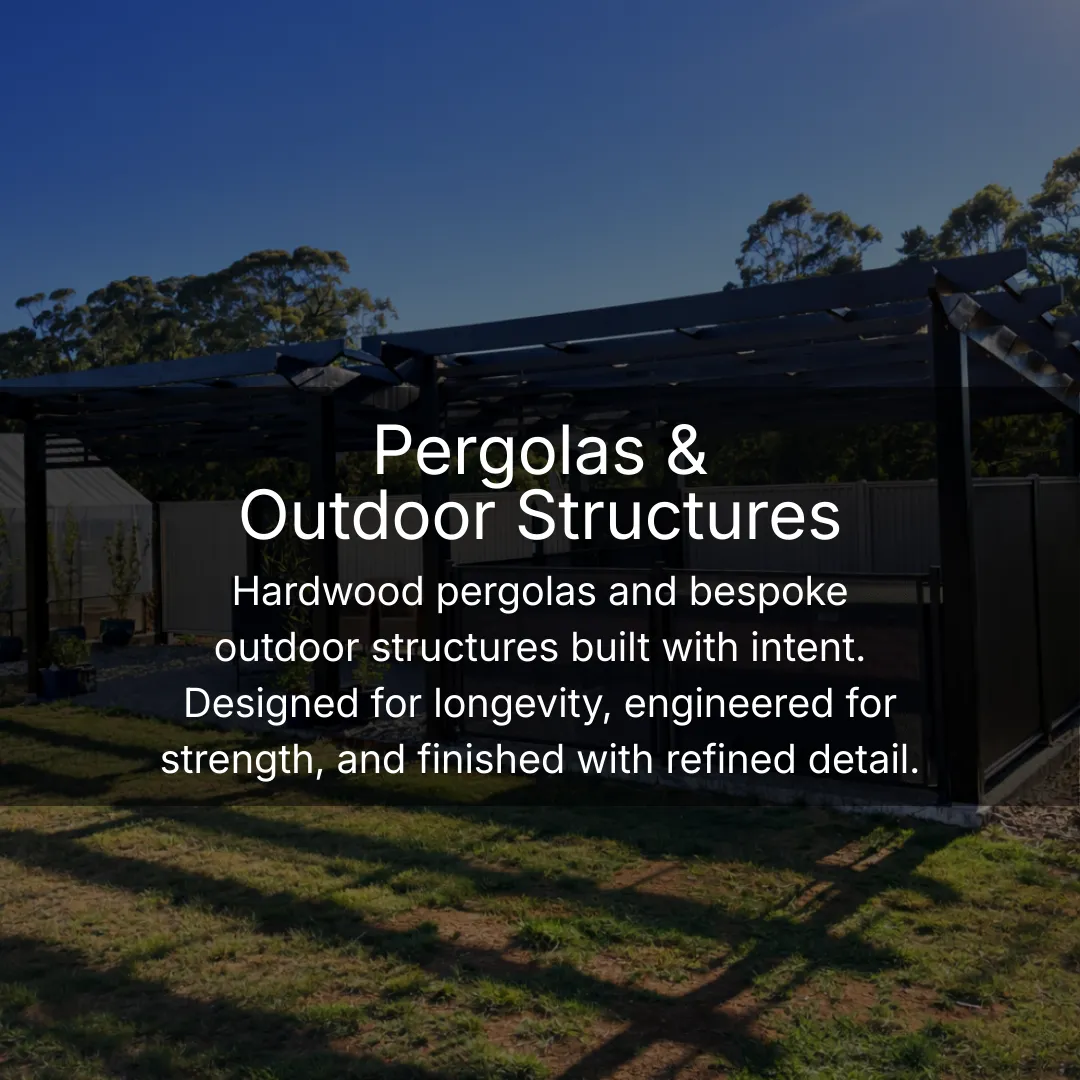 Hardwood pergolas and bespoke outdoor structures built with intent.